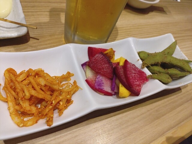 立ち飲み席限定のサービス「せんべろセット」「ドリンク100円OFF」が楽しめる居酒屋さんです。全体的にお手軽な価格なので、値段を気にせず気の赴くままに注文できるのが魅力的なお店でした。