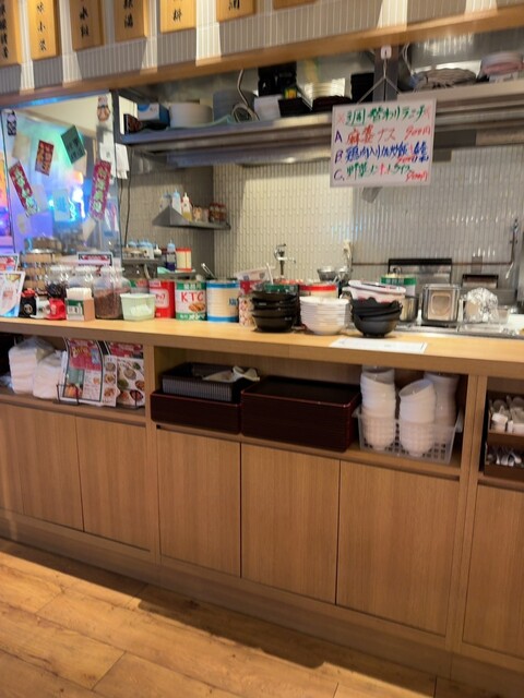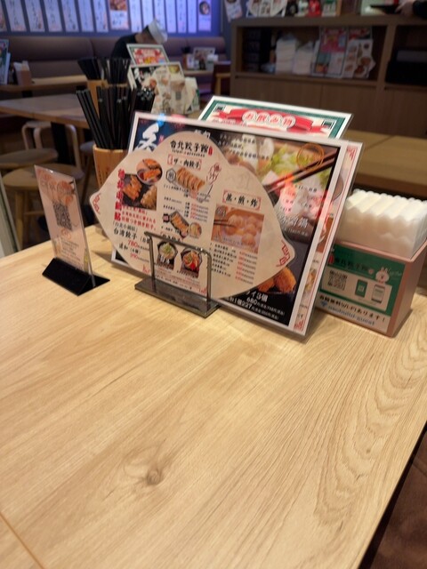 卓上には、醤油、酢、辣油、箸、紙ナプキン、メニュー