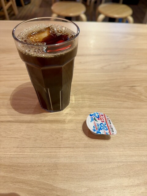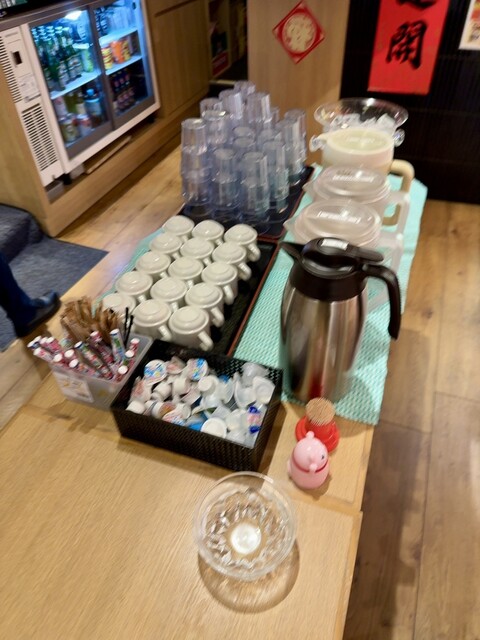キッチン前にドリンクバーがあり、ランチタイムはアイスコーヒーなどが無料で利用可能