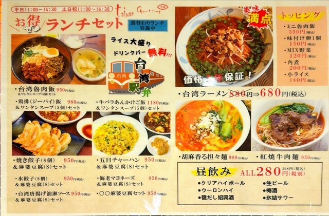 次回来店時は、ランチタイムなら台湾魯肉飯(ルーローハン)、台湾ラーメン(角煮トッピング)、紅焼牛肉麺を注文したい