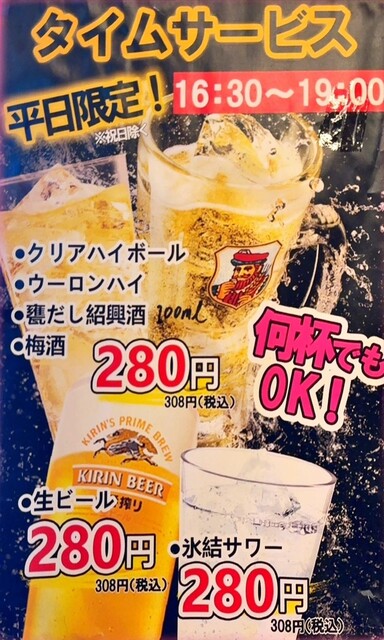 昼飲み ドリンク各種280円