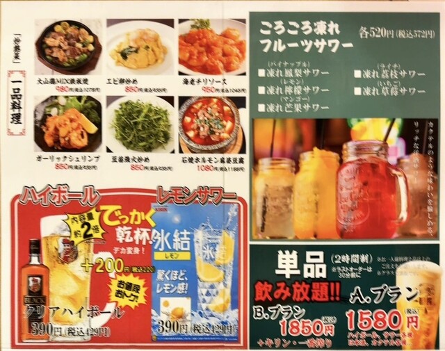 | ドリンク | 日本酒あり、焼酎あり、ワインあり、カクテルあり、日本酒にこだわる、焼酎にこだわる、カクテルにこだわる |