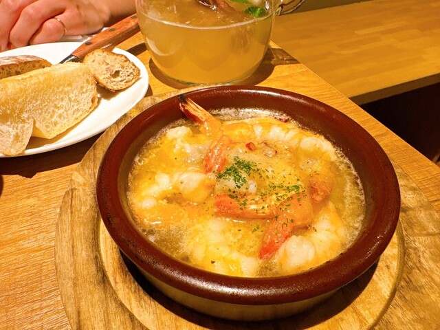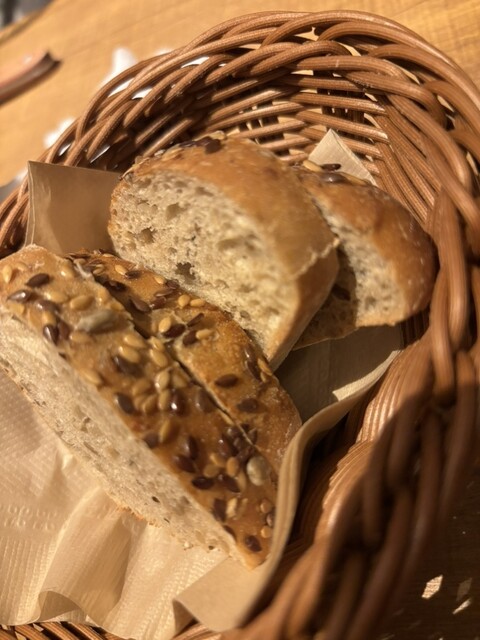 お通し代418円(食べ放題の焼き立てパンです。アヒージョやチーズ、ワインにピッタリ♪たくさんお替りしてください!) ※各コースをご注文の場合は、別途お通し代は頂戴しておりません |