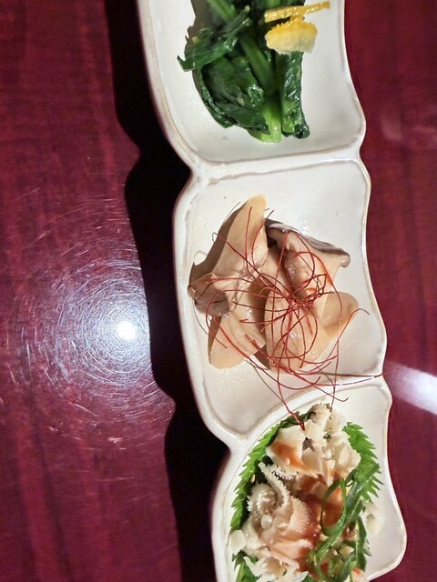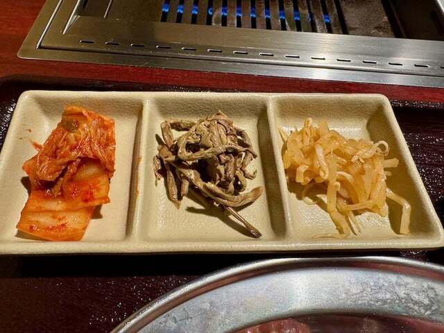 4種のナムル盛り。もやし、ゼンマイ、小松菜、エリンギ。