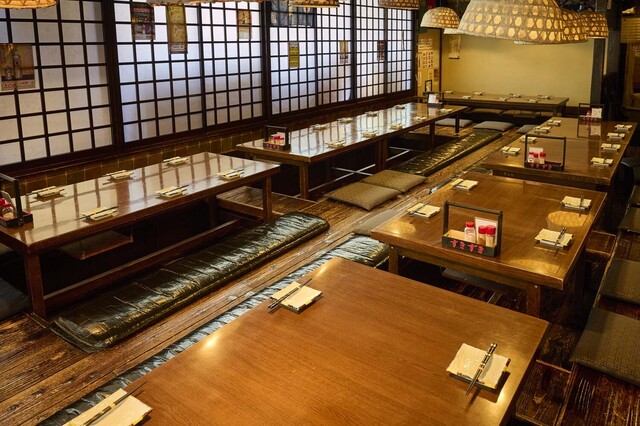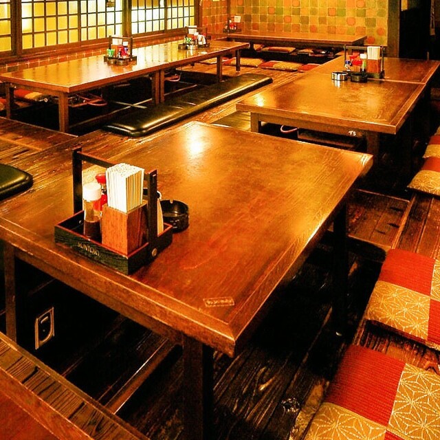 座敷は掘りごたつ。50名様まで宴会予約承ります! (by お店)
