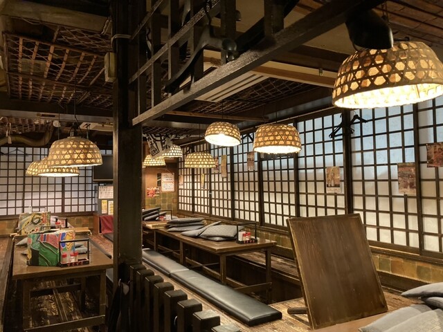 古民家風の店内。店主手作りの提灯ライトや椅... (by お店)