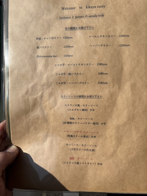 外でメニューを渡されてみますがスパイス20種が気になりました和風かぁ。
