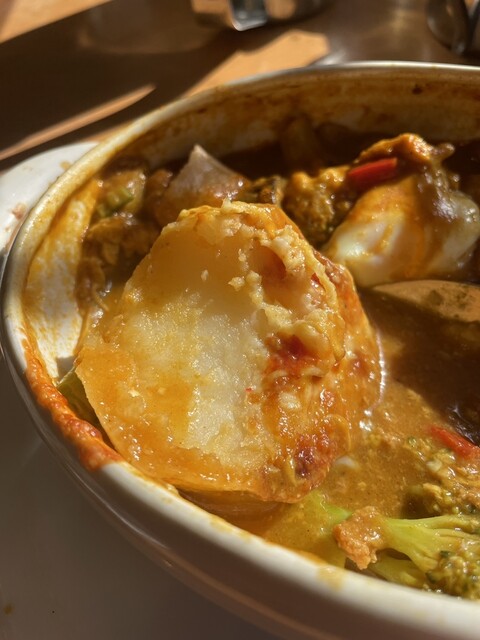 桜木町の人気店。平日午後0時半ごろ着、5組待ち、40分くらい並んだ。列に並んでる間にメニュー渡されて選ぶことができる。じゃがいも入りハンバーグカレー(1580円)を選択。カレーの種類、じゃがいものある...