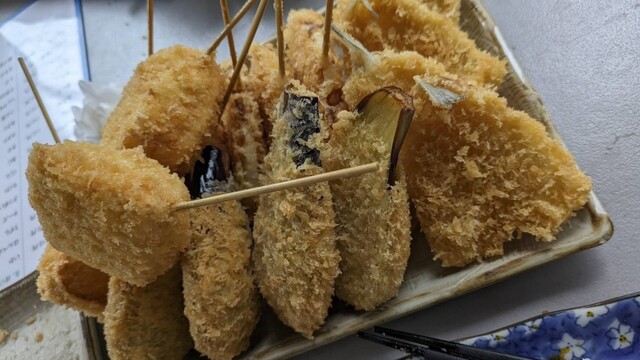 10秒でわかる!「フライの店 ひのでや」 ▶︎一本110円〜!種類豊富で楽しい串揚げのお店! ▶︎薄めの衣がサクサク!揚げたて串揚げがうますぎ★ ▶︎土日は競馬好きの常連さん多!... 詳細を見る