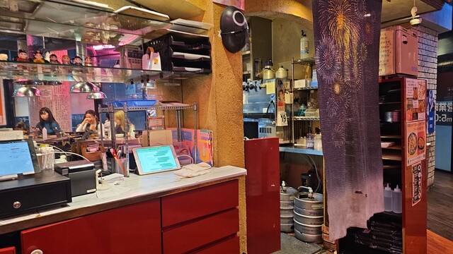 K-POPのポスターが貼られMVが流れていて韓国屋台の雰囲気が楽しめる。