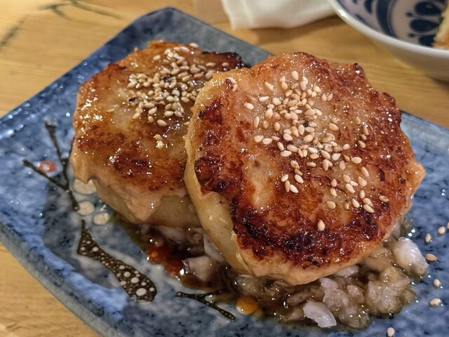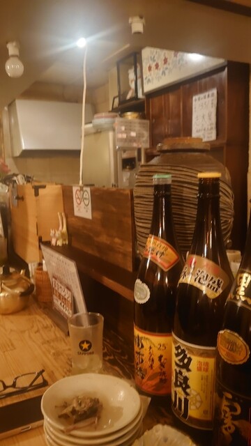 前日に電話予約。現地到着18:00だが、すでに半分くらいは埋まっている。2席分のカウンターに着席。一人でも窮屈にならないように2席分取ってくれている配慮がありがたい。ご主人、着物のおかみさん、研修中の若い女子スタッフの3名体制。やかん割りが名物とのことだが、4杯分くらいあるとのことで、一杯ずつ注文す... 詳細を見る