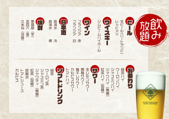 | コース | 飲み放題、食べ放題 |