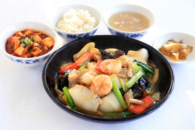 手軽な値段、麻婆豆腐が推しのようだけど夜のお勧め定食に酢豚があるのでそれに決めて入店