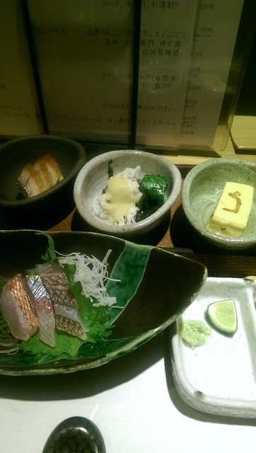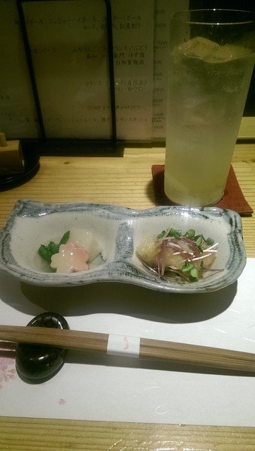 お通し490円(税抜) 先付け2種が付きます |