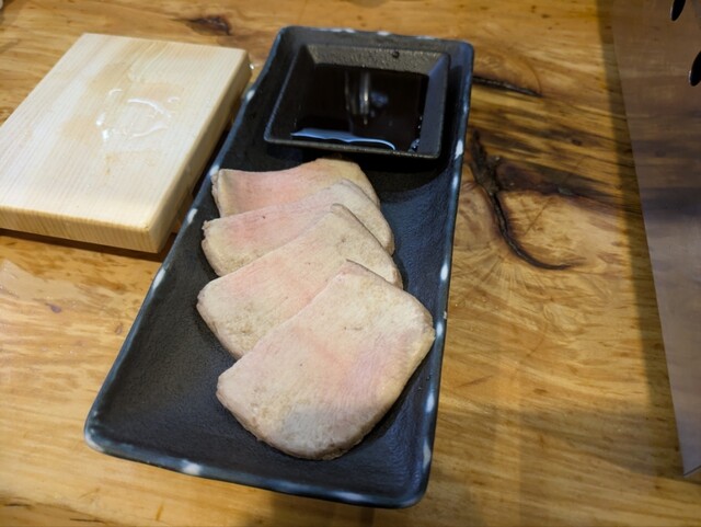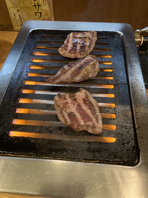 土曜の昼から、聖地野毛で飲み。 カミさんを初招待。 1軒目は2020焼肉EAST100名店のこちら。 1切れから注文できる立ち食いの焼肉店。 GOTOイートのポイントがあったので、あらかじめ食べログ予約にて訪店。 このあと何軒か回るので、 注文は、瓶ビール+タイトルの2種「ドデカハラミ」「タン4種盛り」のみ。 まずはタン4種盛りから。 「タン下」「タン先」「タン元」「トロタ... 詳細を見る