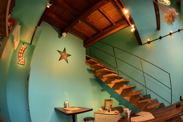 外からも分かる色鮮やかな内装と、2階建ての半分が吹き抜けになっており、陽気で開放的な雰囲気で入りやすかった。