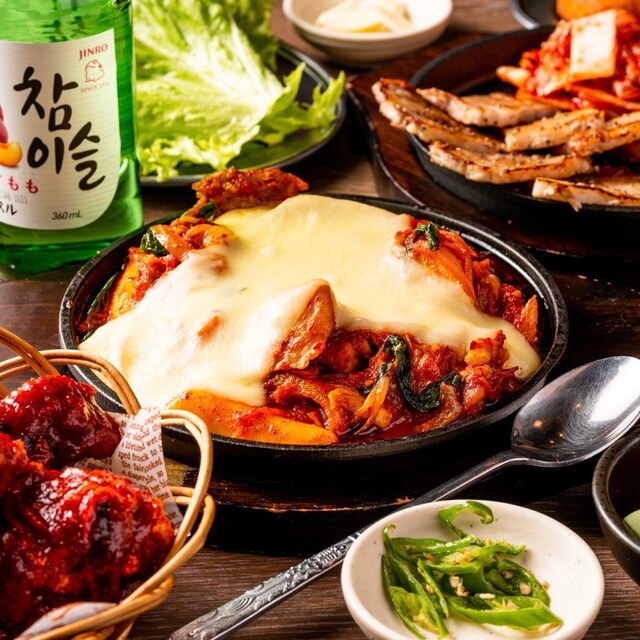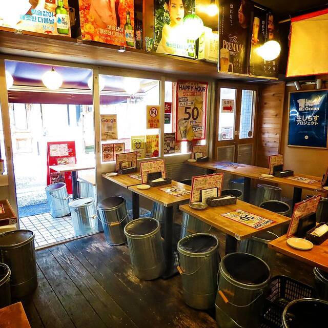 野毛一番街にある当店は、韓国料理をご提供◎あの韓国ドラマで話題の韓国焼酎《SOJU》チャミスル、ジョウンデーがエリア最大14種類!!!【チーズタッカルビ】、イイ蛸の激辛鉄板料理【チュックミ】など、本場の味でおもてなし致します!チャミスルと一緒に味わえば、テンションもMAXに♪ハッピーアワーは、199円でドリンクが楽しめます!◎ちょい呑みや女子会、仲間とのお集まりなど、是非、お気軽にご利用ください!