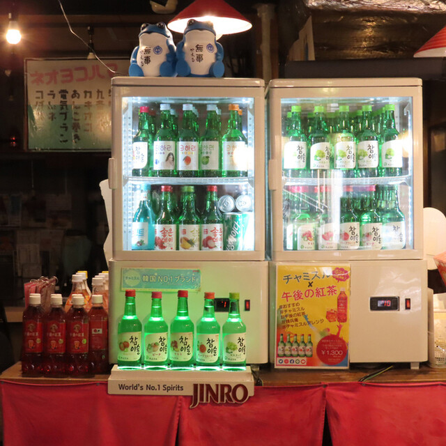 自慢の100本入るチャミスル専用ショーケース (by お店)