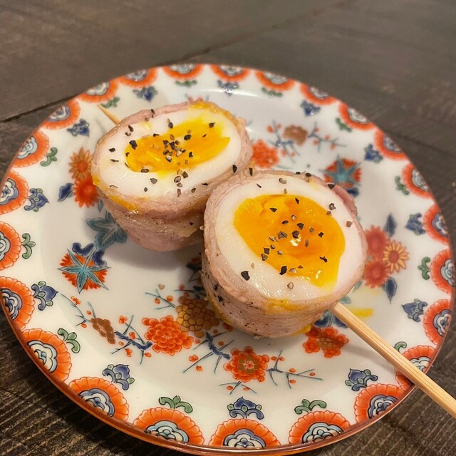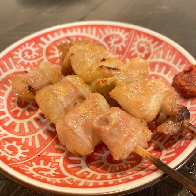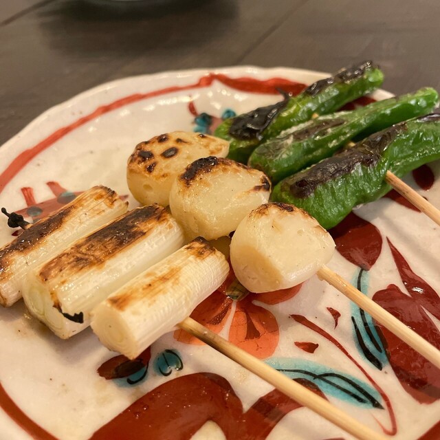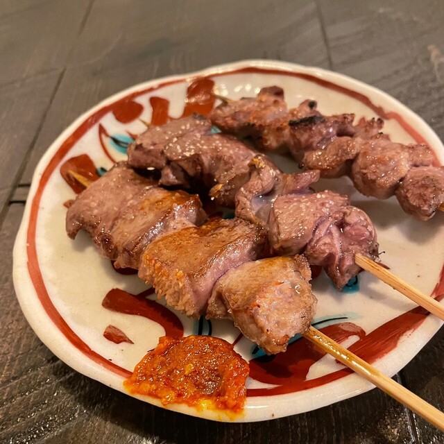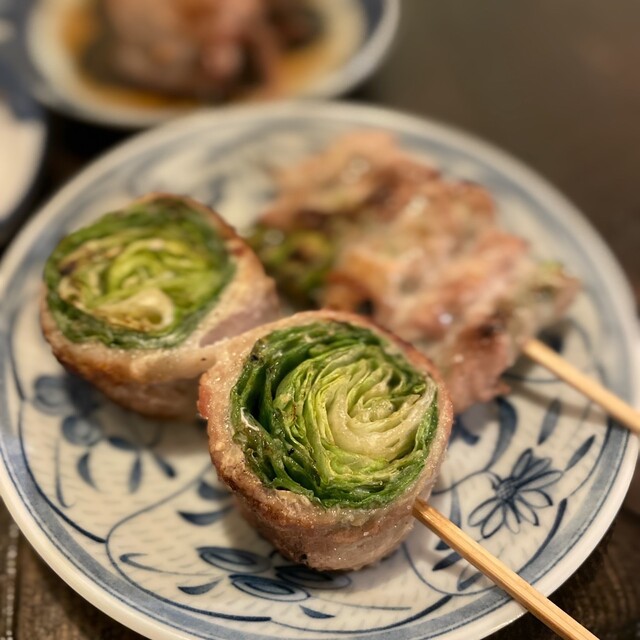 串はもちろん、名物は「もつ煮込み」「とろレバ刺し」。ヘルシーな「野菜巻き串」は女性客に人気。