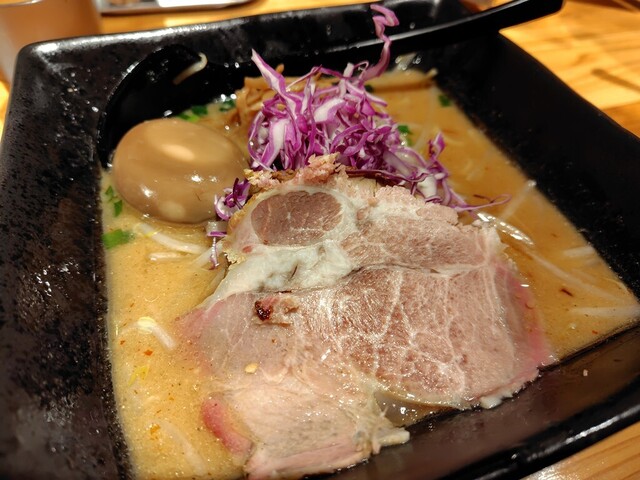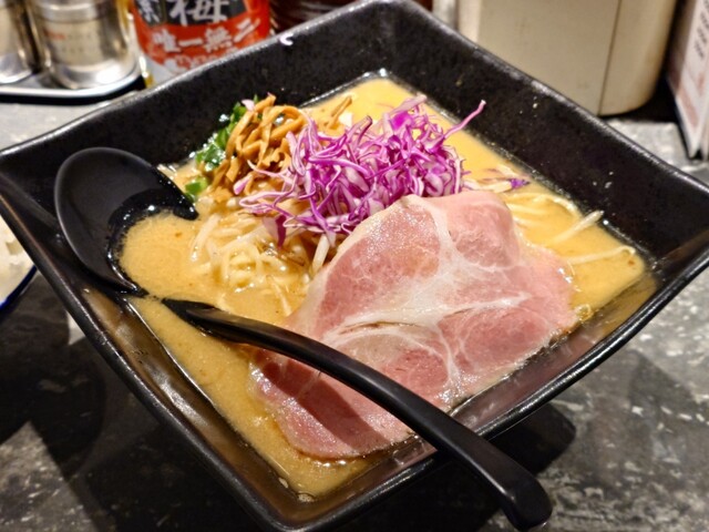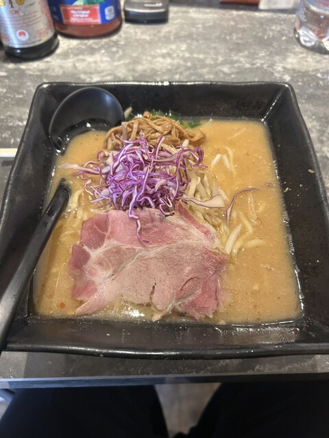平日の開店時間11時に到着、あれ?開店待ちが誰もいない(・_・; 早めに店を開けたのかな?いや、まだ閉魚中(゚o゚;; そして営魚、一番乗りで入店^ ^ 入ってすぐ左側の券売機で味噌ラーメン並盛1,050円の食券を購入してカウンター席へ。平日は麺大盛無料です♪ お願いしちゃいました!11分で着丼、な... 詳細を見る