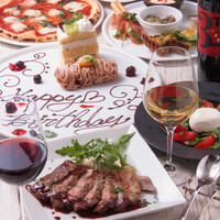 当店1番人気のマルゲリータ+ピッツァかパスタからお好きな方を選べます。 肉料理は牛ハラミのグリルも楽しめる大満足食事メインコース。 最後のドルチェまで美味しくお召し上がりいただけます。 ◆飲み放題付 +1700円 ◆生ビール付き飲み放題 +600円 ※飲み放題付きは要望に記載してください。