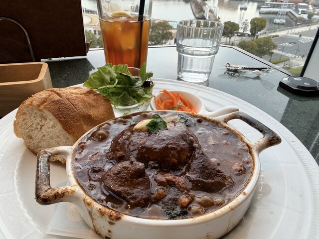 私は平日ランチメニューの煮込みハンバーグと牛肉の赤ワインソース...