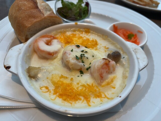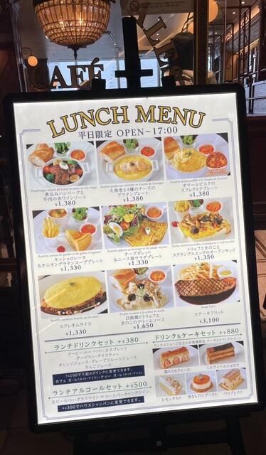 平日のランチ限定のお値段で1300円ほどでふわふわのオムライスが食べられました。デミグラスソースを自分でかけて食べるタイプでした。卵がふわふわでバターの味がしっかりついていて美味しかったです。飲み物と...