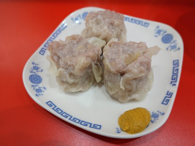 現地到着平日18:15頃。入店すると、テーブルは空いているがカウンター席は満席だが、帰り支度の客がいたので、しばしそのまま待つ。テーブルを片付けてもらって着席。注文はエビ焼きそば(¥900)と、焼売(¥500)。この時、客は壮年から老年男子のみ。カウンターはほぼ常連の模様で、メニューに無理を聞いてもらっている。移転後初めて来店で、当たり前だがずいぶん綺麗になった。