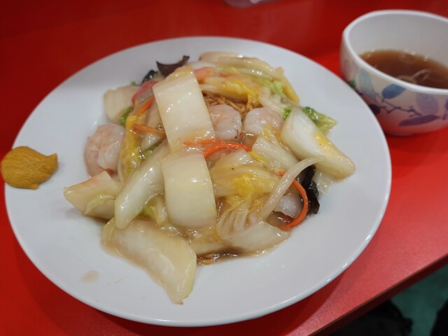 現地到着平日18:15頃。入店すると、テーブルは空いているがカウンター席は満席だが、帰り支度の客がいたので、しばしそのまま待つ。テーブルを片付けてもらって着席。注文はエビ焼きそば(... 詳細を見る