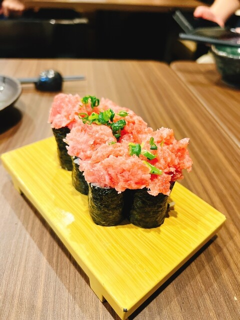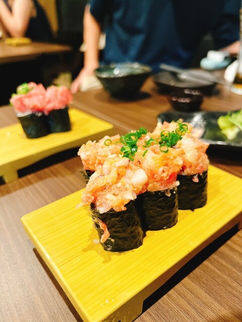 個人的にはここ最近行った中でもう一度行きたいお店。 魚が食べたくなり、予約なしで17時ごろにお邪魔してきました。 予約でいっぱいだったため19時までならオッケーとのこと。 巻物の種類が豊富で人気メニューっぽいものを一通り注文。 どのネタも新鮮かつ、温度管理が行き届いているので口に入れた瞬... 詳細を見る