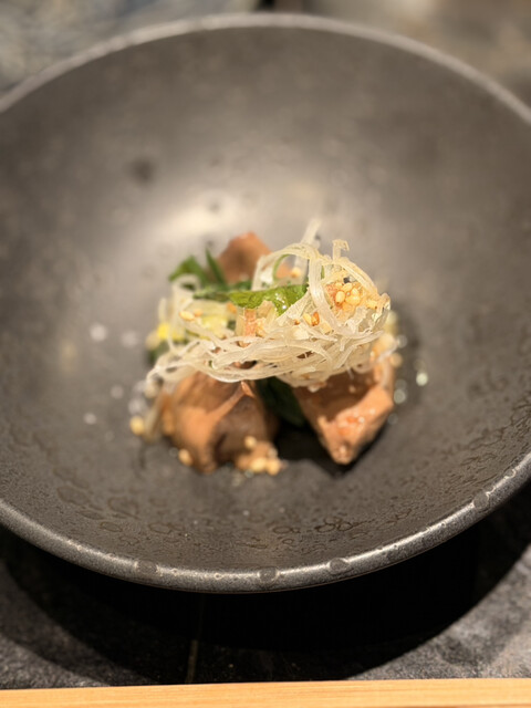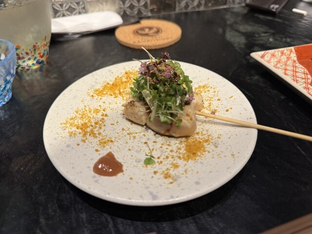 残念です。ここであまりコストのことを考えたくないのでいいワインを持ち込んだ。ただいわゆる高級焼き鳥以上でも以下でもない。 これならもっと無骨な焼き鳥が数本あってもいいのかなと思いました。 味も少しぼや...