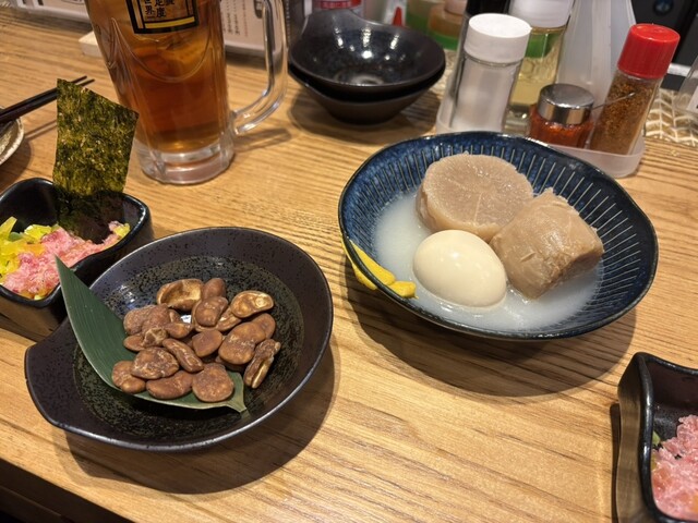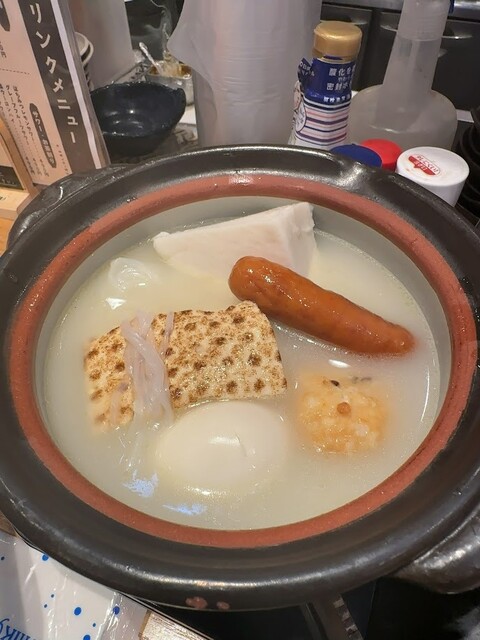 ¥199 博多名物羽つき餃子 ¥980 土鍋おでん5種盛り ¥480 にら月見 ¥550 生ビール キリン一番搾り×4 ¥350 チャージ料 西口一番街、入り口にある... 詳細を見る