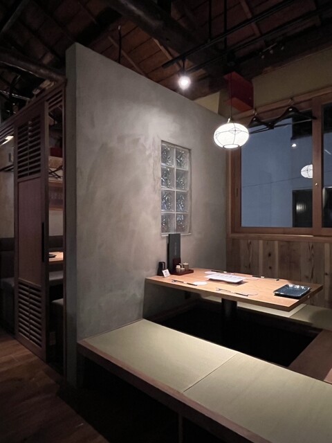 | 空間・設備 | オシャレな空間、落ち着いた空間、カップルシートあり、カウンター席あり、ソファー席あり、座敷あり、掘りごたつあり、電源あり、無料Wi-Fiあり |