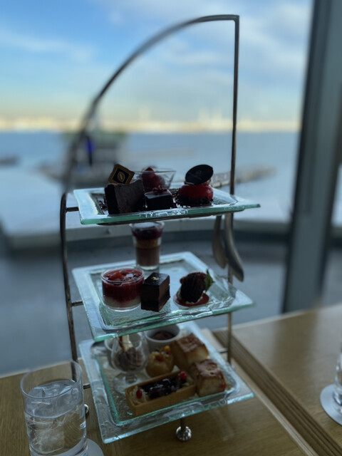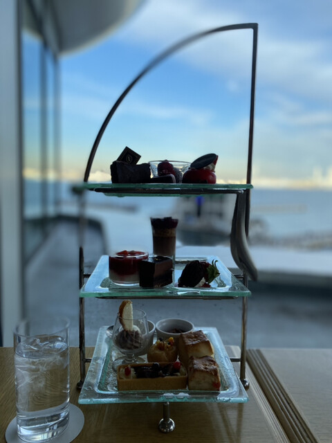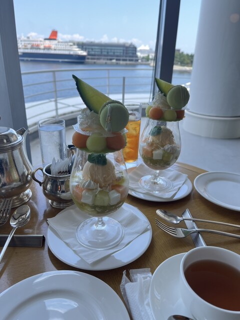 7/13までのメロンのアフタヌーンティーへ✨ 見た目もグリーンで爽やかで海とよく合う雰囲気です。 メロンのヴェリーヌが特に美しく、 上のクリームとホワイトチョコレートの蝶... 詳細を見る