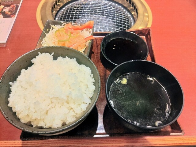 お昼時に伺いました。店内はまだ混んでなく、店員さんからテーブル席に案内され、QRコードでの注文と教えてもらいました。ランチメニューを見ると、焼肉ランチの他にカルビクッパがありました。早速、注文をすすめると大盛りが無料だったので迷わず大盛りにしました。10分程度で配膳、熱々のカルビクッパが目の前に。そしていかにもとどうぞとお肉の主張が強めです。主張の強いお肉の前にスープからいただきますと、辛さがじんわりとくる美味しさです。そしてお肉をいただくと、これが柔らかくて美味しいです。そしてそして、ご飯の量が半端なく多いです。大盛り、スゴいです。完食しましたが、本当にお腹いっぱいになりました。最後にコーヒーがテイクアウトできるのも良かったです。次は違うメニューを食べに伺います。