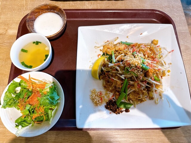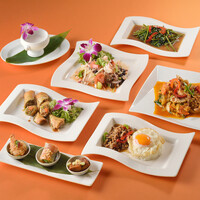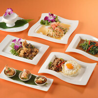 定番の生春巻きや海老のピリ辛フライ、さつま揚げの前菜3種からゆったりとスタートし、ガパオの旨味が詰まった揚げ春巻きやさっぱりとしたタイの春雨サラダに人気のプーパッポンカリーなどタイハーブが効いた旨辛料理に舌鼓。締めの食事はタイの代表的なご飯ものとヌードルからチョイスして楽しめるボリューム満点のランチコースをご堪能ください。