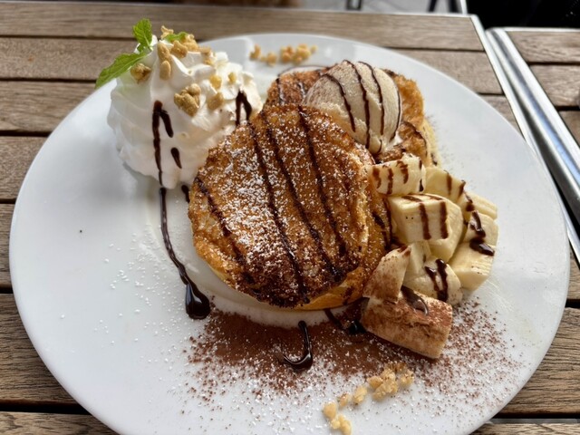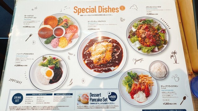 暑くて長い夏が終わったので、久しぶりに、愛犬とテラス席にパンケーキを食べに訪れました。 オーダーは、メキシカンジャンバラヤ(税込1430円)、プルドポークサンド(1408円)、チョコバナナパンケーキ(1518円)、フレンチフライ レギュラーサイズ、湘南ビール、県民共済カードでソフトドリンクが1... 詳細を見る