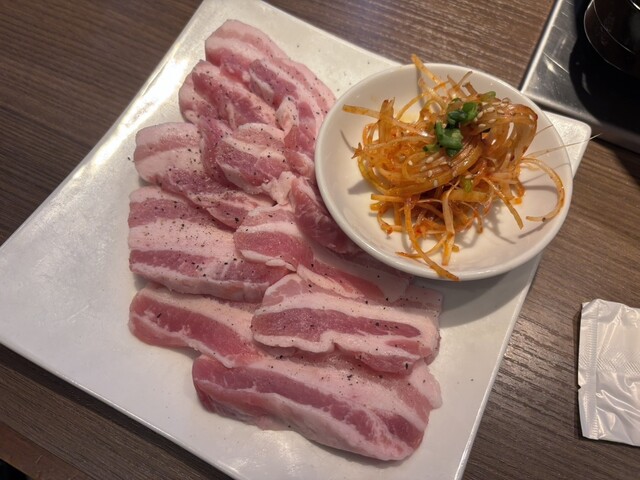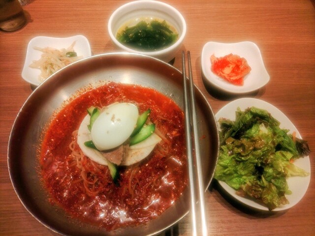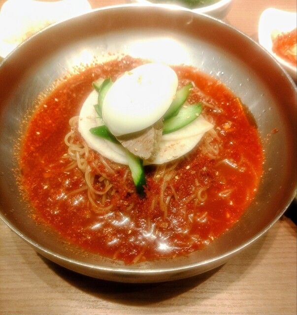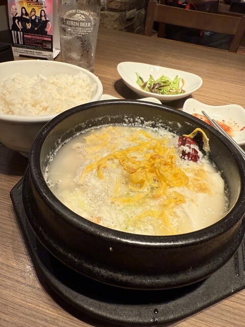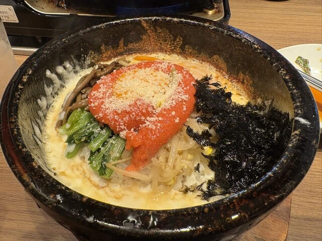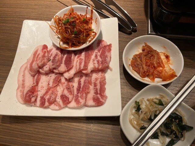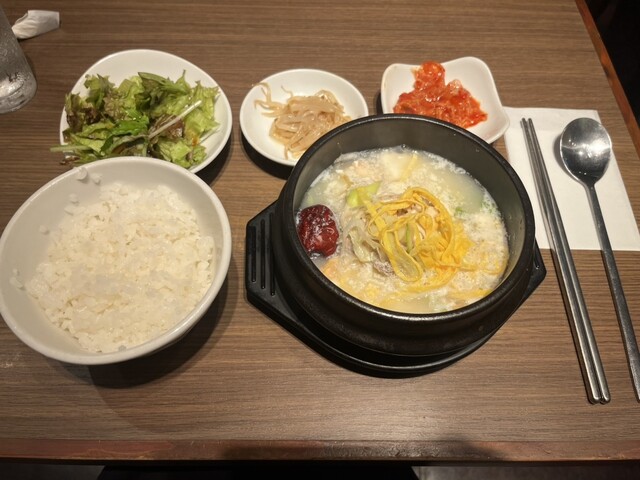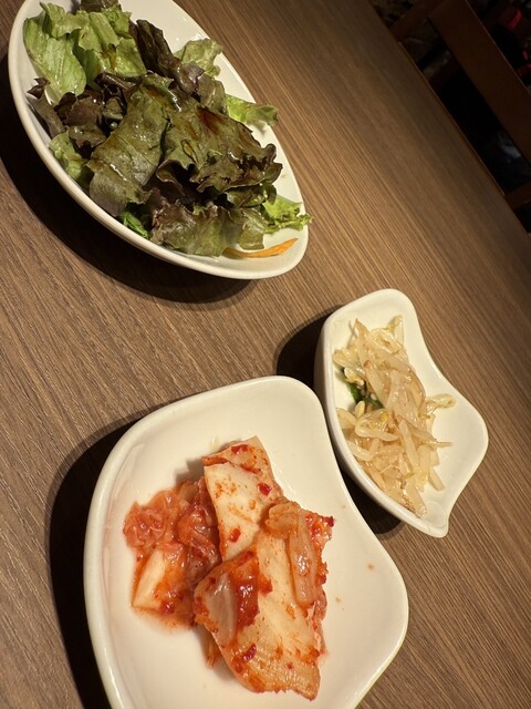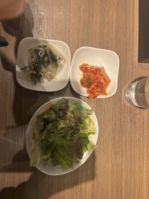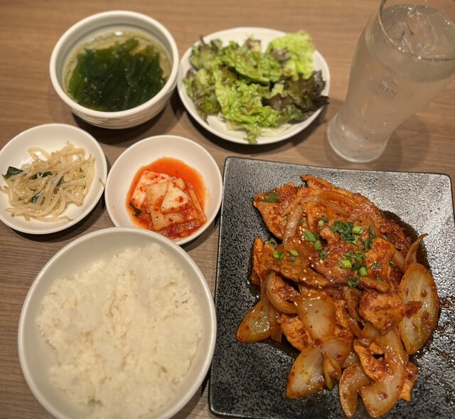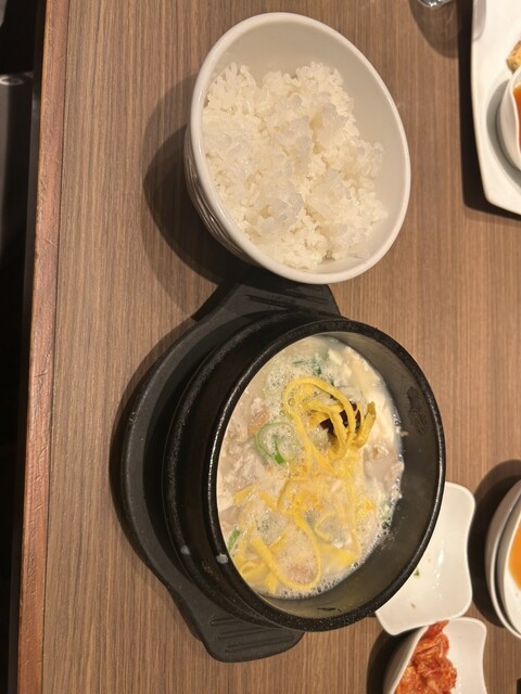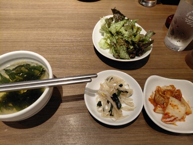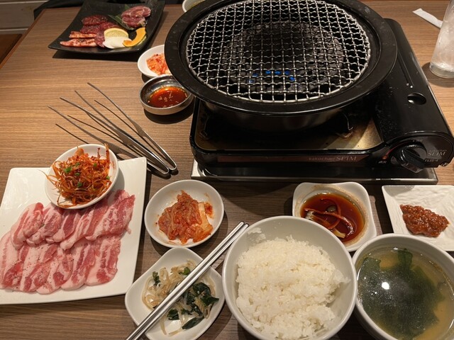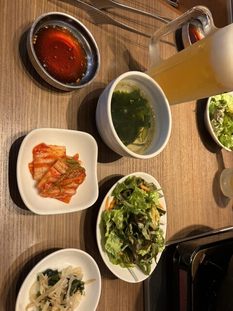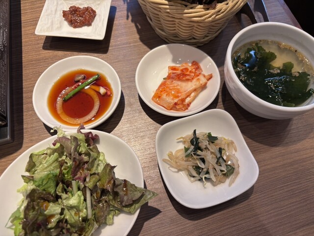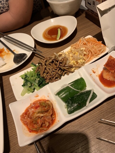 焼肉定食を注文しました。おかずが多くて七輪も置いたらテーブルがいっぱいになりました。お肉が来た時に置く場所がなくて大変でした。写真も撮れず。。もっと余裕のある席なら良かったです。追加でチヂミと純豆腐も...
