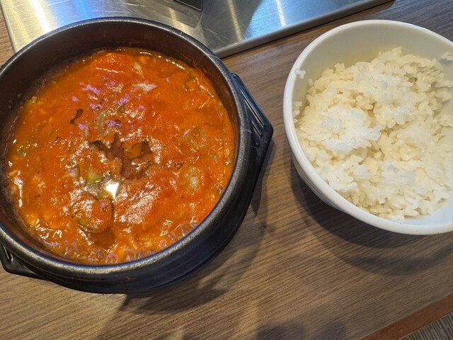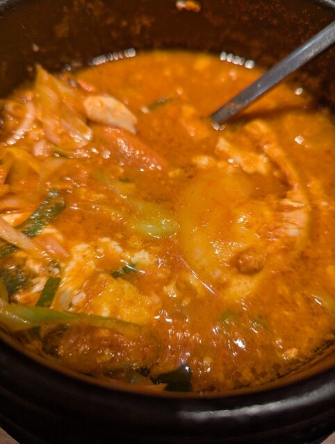 スンドゥブを頼みましたが、にんにくチューブを食べてるのか...