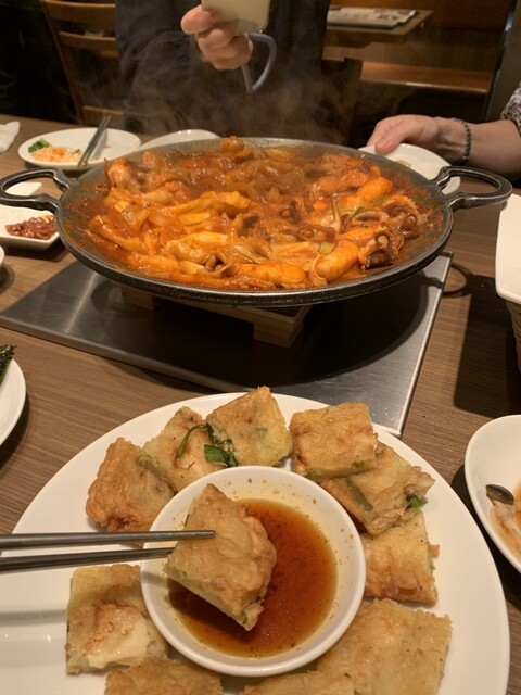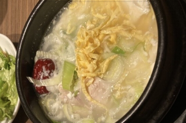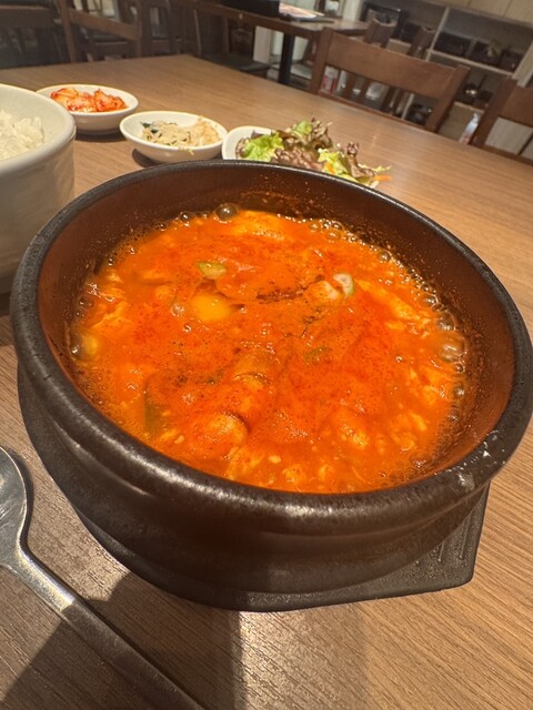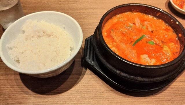 同僚と午前11時半過ぎに伺いました。お昼前だけあってマークイズの4階は空いていました。すんなりと店内の2人掛けのテーブル席に案内されました。肉野菜炒めと迷いましたが、温まるために純豆腐ランチにしました...