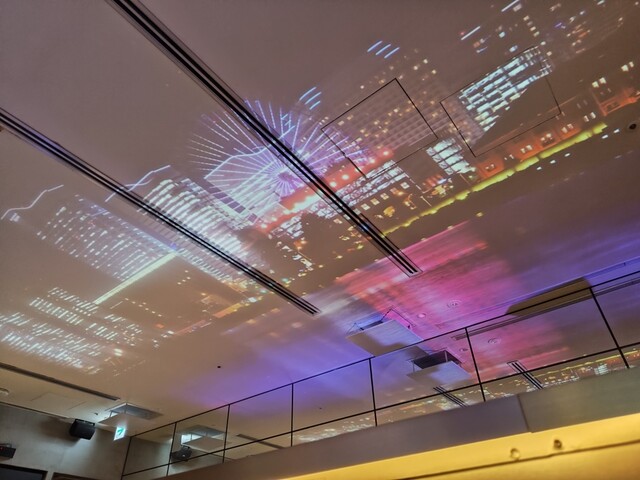 天井にはプロジェクションマッピングが照らされている。