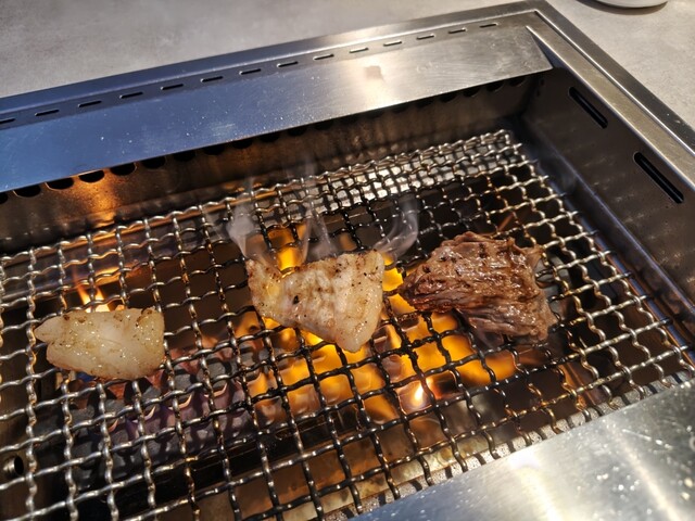 各テーブルにはロースターがあり自分で焼くスタイル。