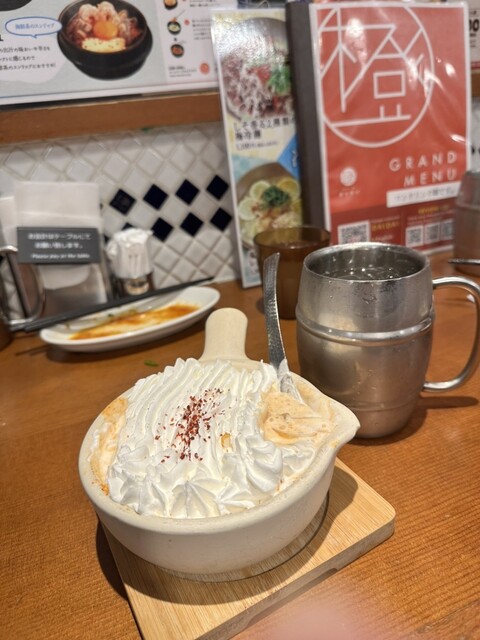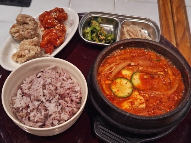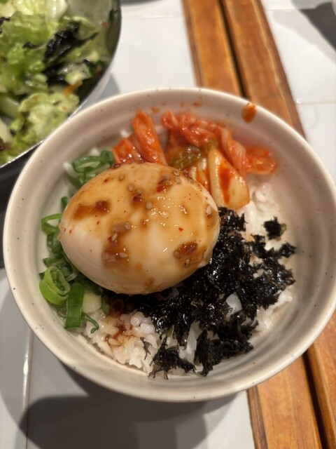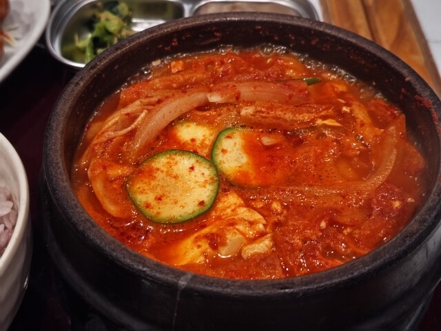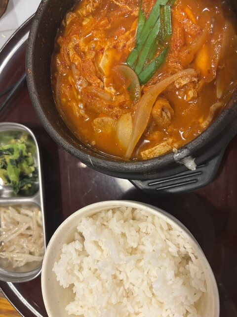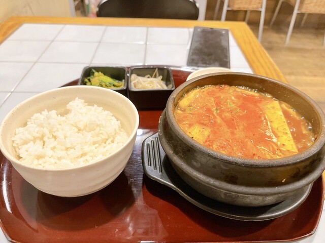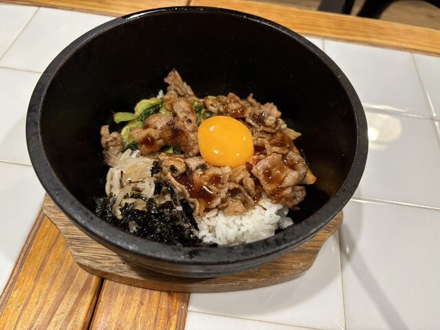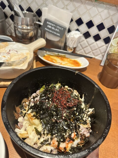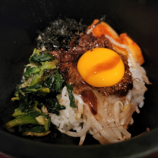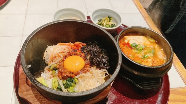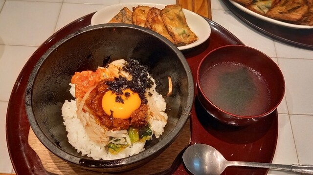 チヂミがさくさく&熱々で美味しい。チヂミを齧ると中から甘味のあるたまねぎで美味しさをアップ。チヂミと石焼ビビンバのセットにわかめスープがセットで分量的にもちょうど良い。ただわかめスープの容器が味噌汁の...