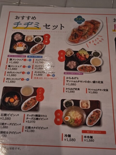 チヂミを食べたくて来店しました。石焼ビビンバと共にいただきましたが前よりも味が落ちたと思います。まず油っぽい。お料理が冷めている。料理にこくがない。写真をみて選びましたが実物は全然違いがっかりしました。