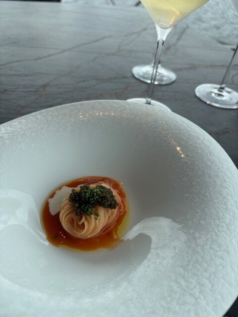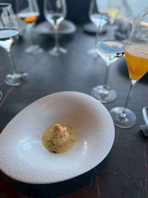 ペアリング付きのショートコースで伺いました。本当は欲張りたかったのですが、ちょうど良い量でした。ランチはご家族で来られている方もいたり、とてもゆっくり素敵な時間を過ごせました。景色がとっても良いので次...