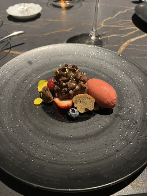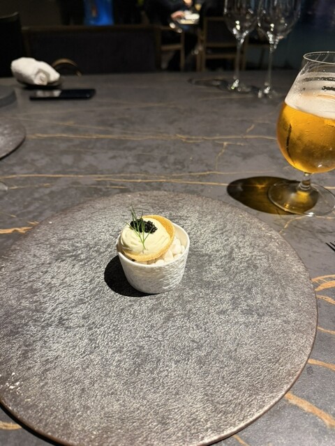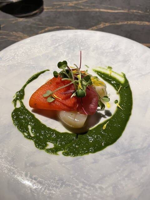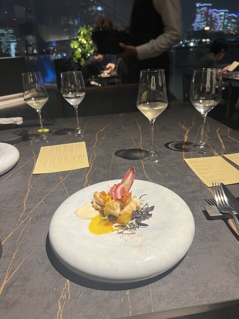 クリスマスに訪問。20:00-からのクリスマスコースの予約で、入れ替え制だったみたいで同じ時間予約の客が一斉入店(ほぼ全員カップル)。窓からはみなとみらい横浜の夜景が一望できます。ペアリングワインもシ...