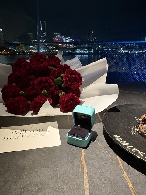 みなとみらいのランドマークや観覧車、赤レンガ倉庫を一望できるロケーションで、昼間からとても優雅な時間を過ごせました。