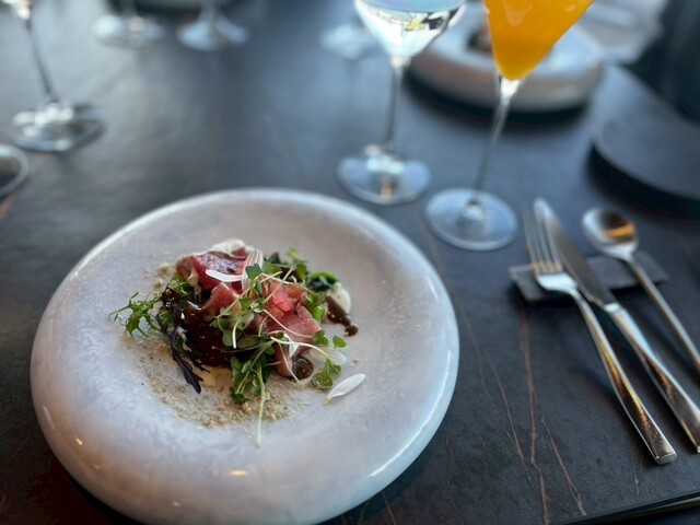利用当日は隣にクルーズ船が停泊しており、景色がやや遮られていました。お店の場所も少し分かりにくい印象です。店内の雰囲気は特別に華やかというわけではありませんが、全体としては居心地の良い空間でした。