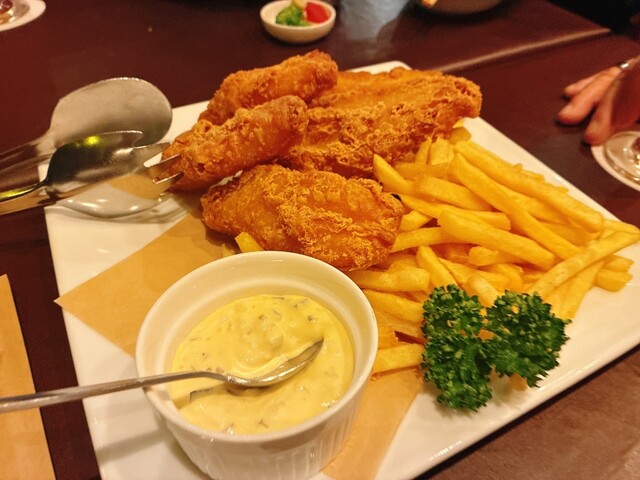 同僚が演奏するコンサートがみなとみらいホールであったので、少し歩いてこちらのお店で軽くランチと夕食の合間のおやつ。フィッシュ&チップスもシーザーサラダもサイズを選べるのが嬉しいですね。タンパク質と野菜...