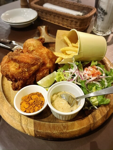 ご飯の写真を撮り忘れてしまったのですがお肉の盛り合わせとポテトサラダ、クラフトビールを注文しました!